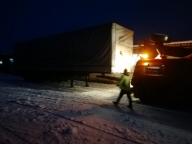 Повышенной сложности эвакуация грузовых автомобилей (постановка на колеса опрокинувшихся автомашин), вытаскивание на дорожное полотно